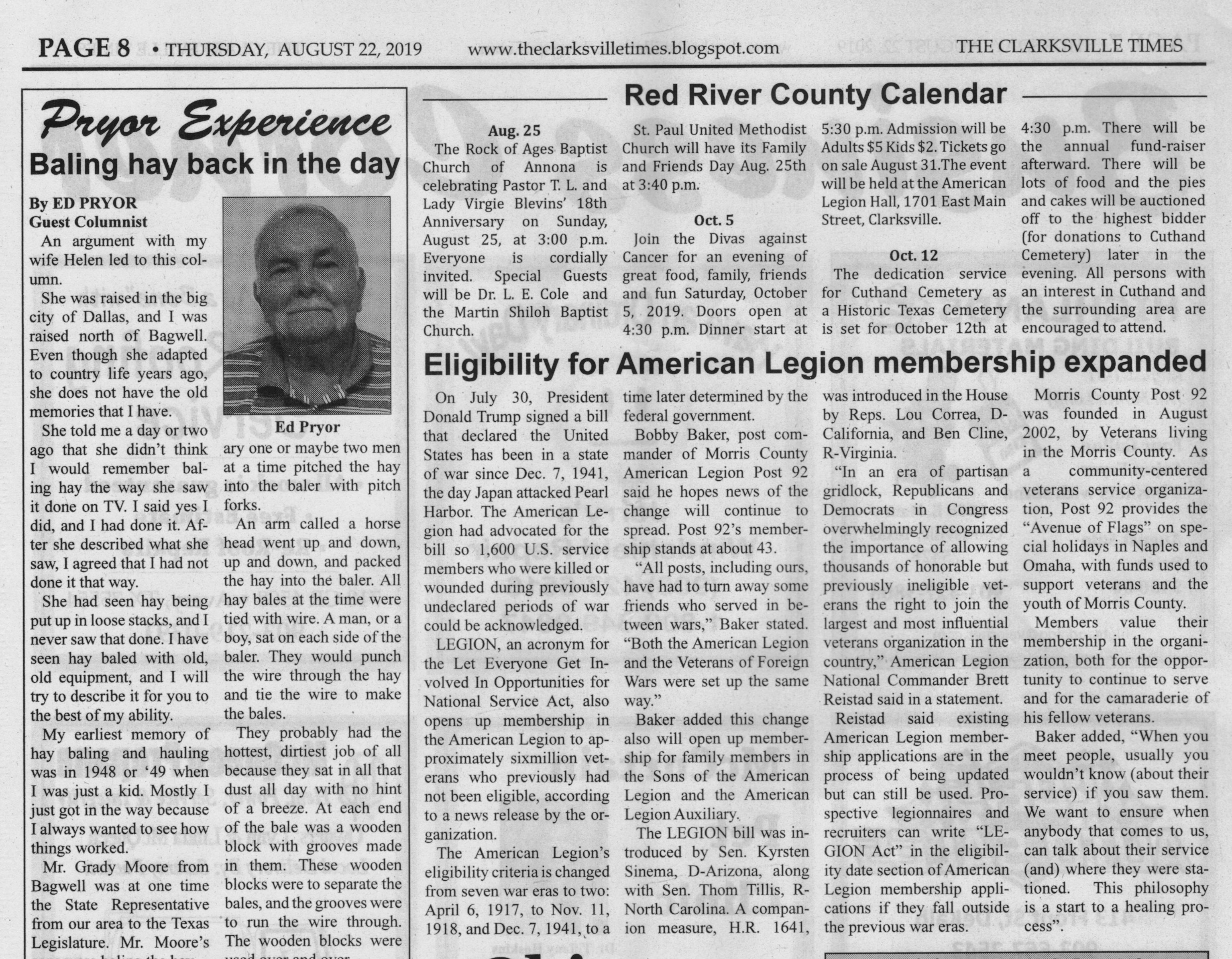 | 2019-08-22 Eligibility for American Legion membership expanded |