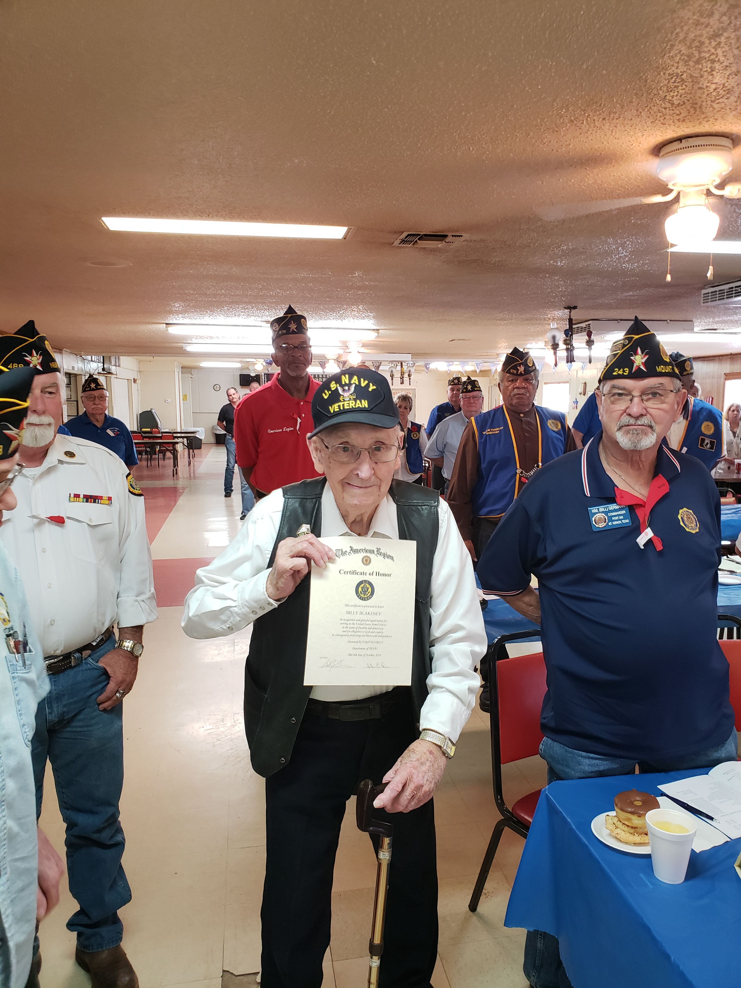| 2019-01-10 | Charles Davidson, a 94 year old WWII (Normandy) Veteran with 58 years in the Legion received his certificate from the Post 199 Commander, Robert Ogg, with 57 years in the Legion.