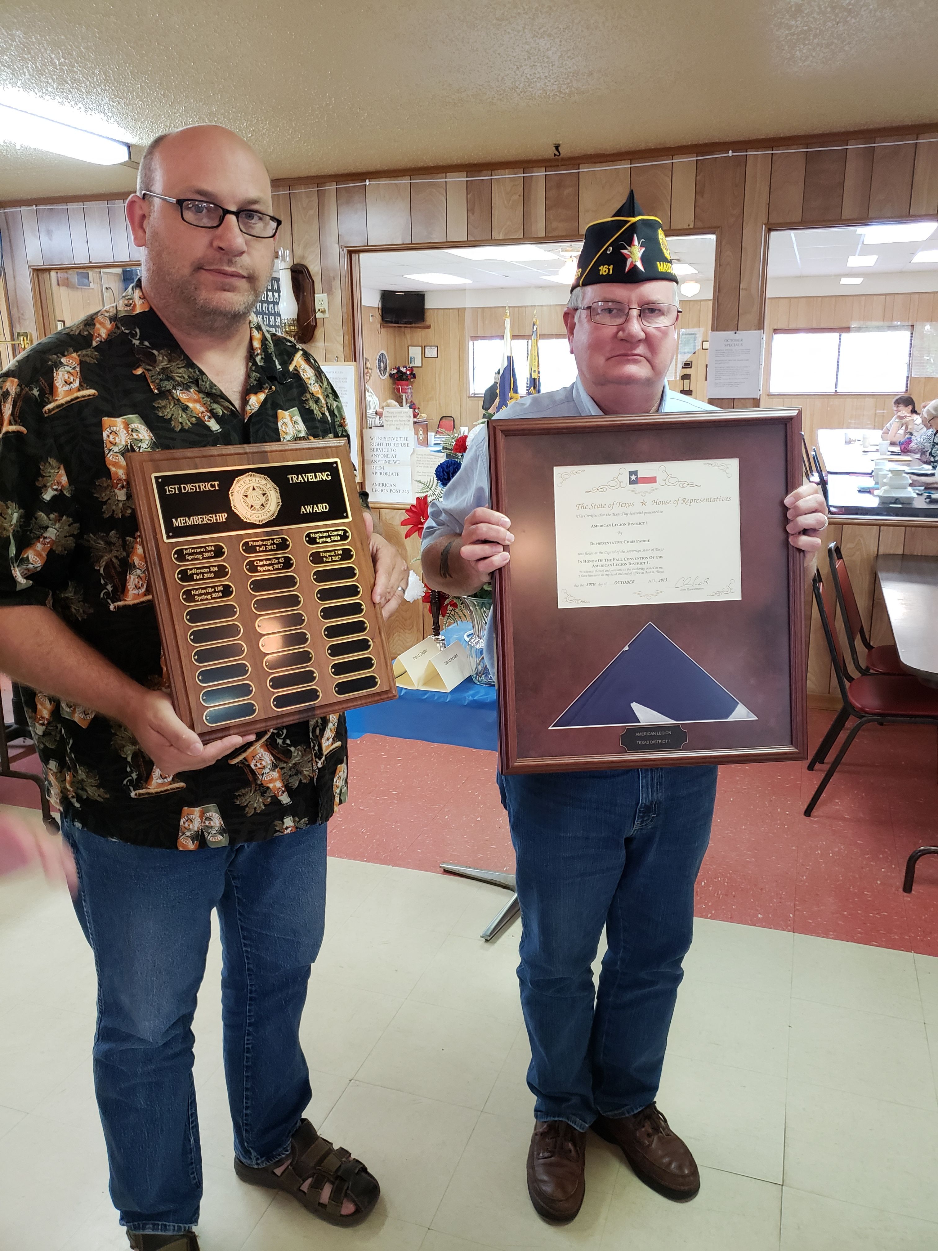 | Post 161 retains the District top membership award. |