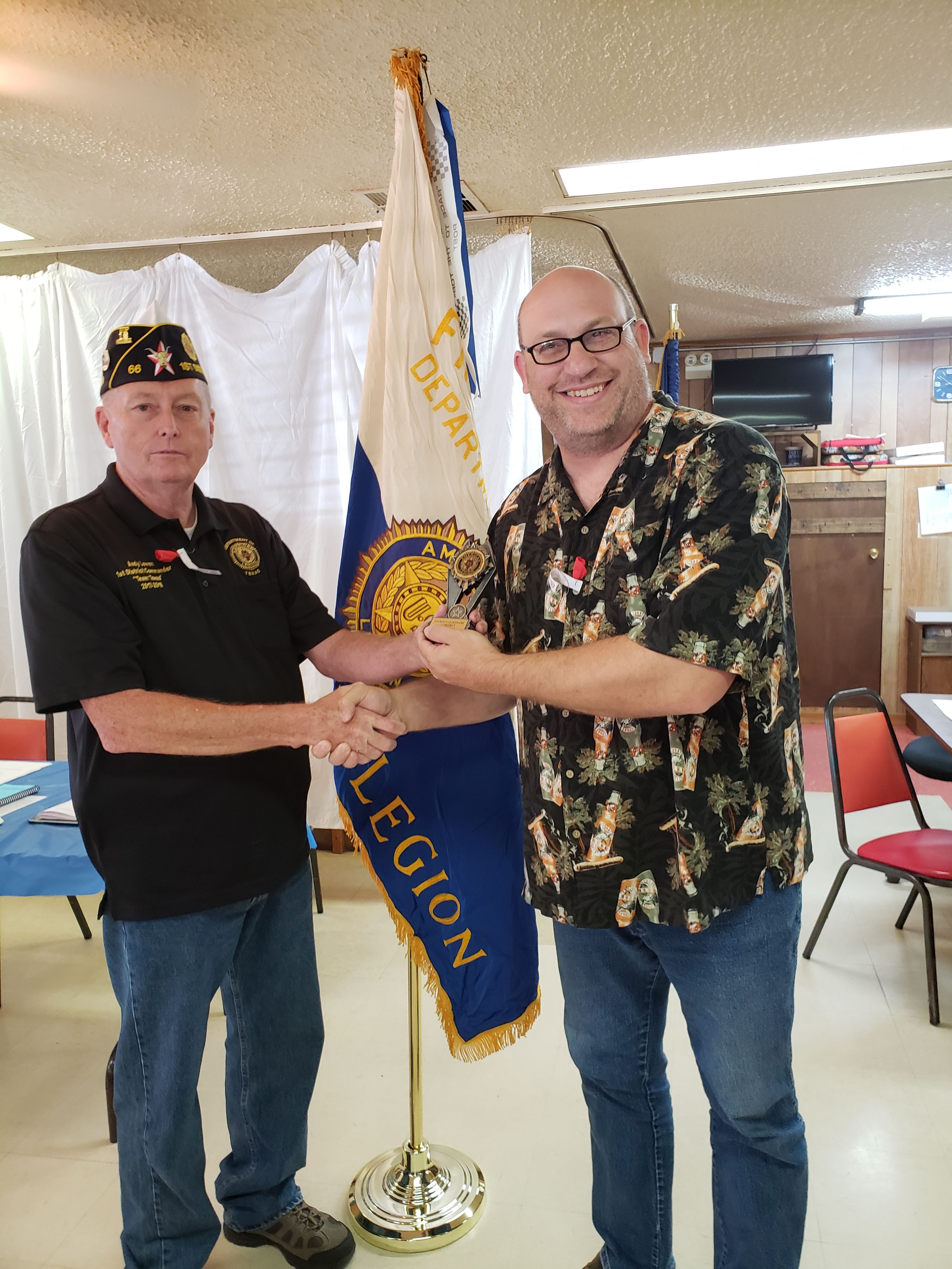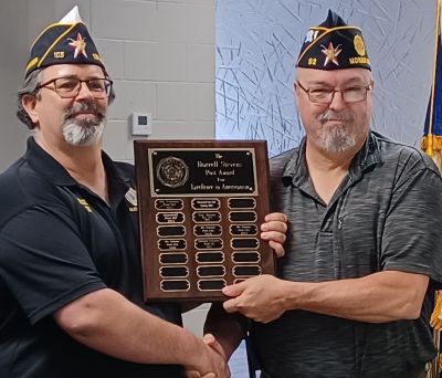 | Matt Fisk, Commander and Ken Adams, Adjutant Post 161 presented with the District's Award. |