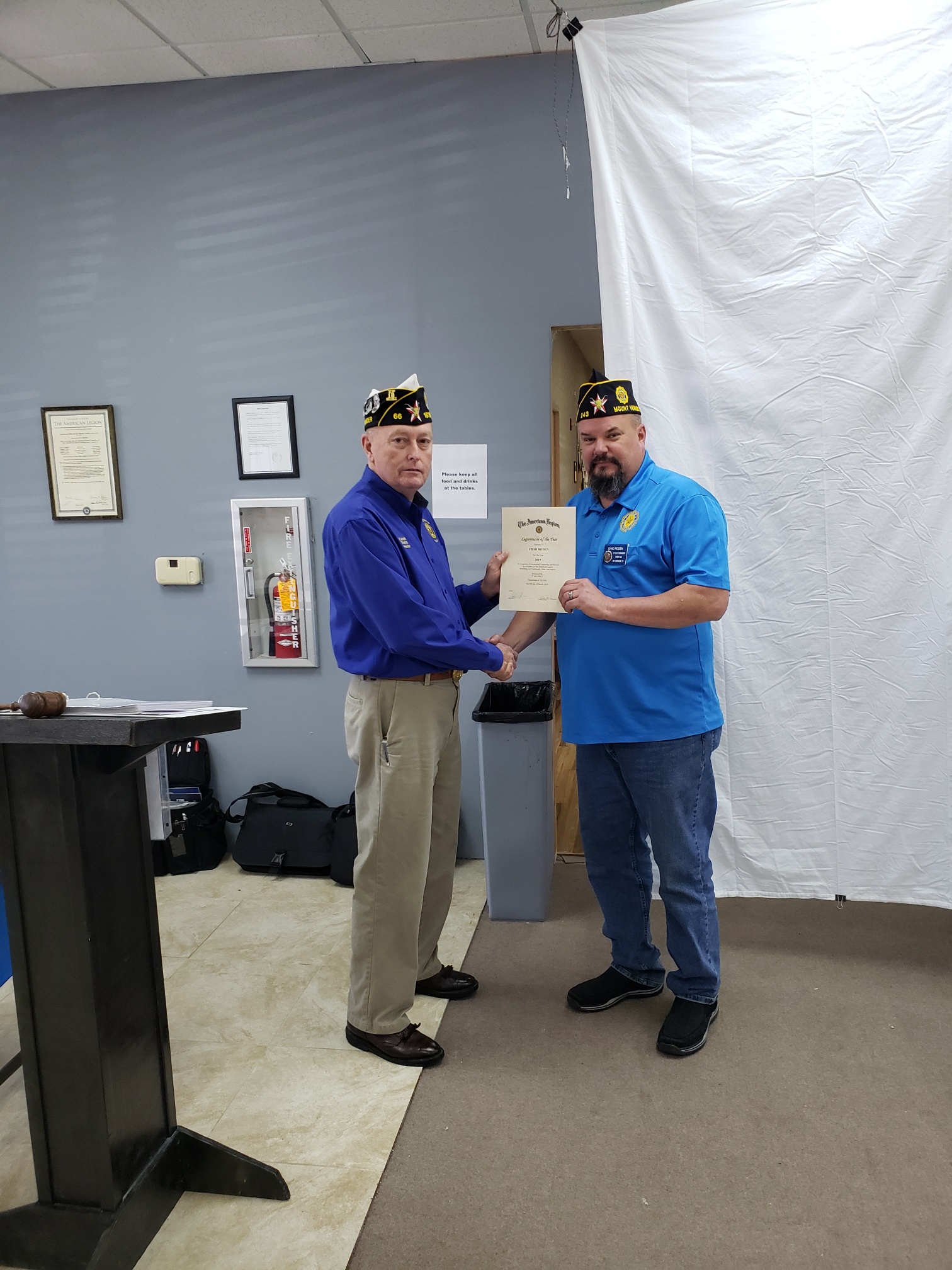 | Rodney Fuller, Post 488 presented the award for a Post with the most attending the convention. |