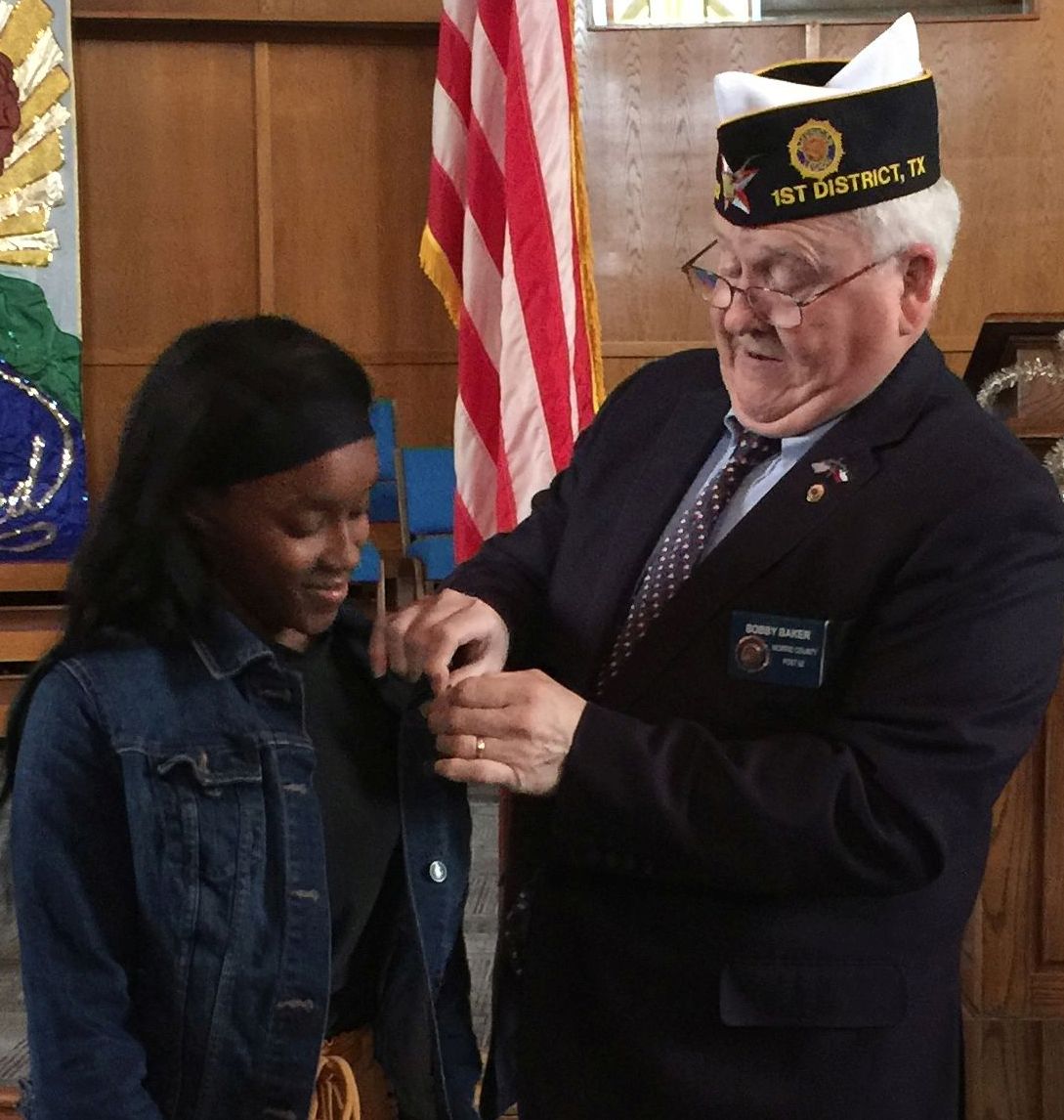 | Nakeisha Robinson, 1st District Oratorical Winner, and a Senior at Daingerfield High School.Bobby Baker, District Adjutant and Oratorical Chairman |