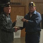 | Tom Trissell, Clarksville Post Adjutant, received awards from District Commander, Glenn Willis. |