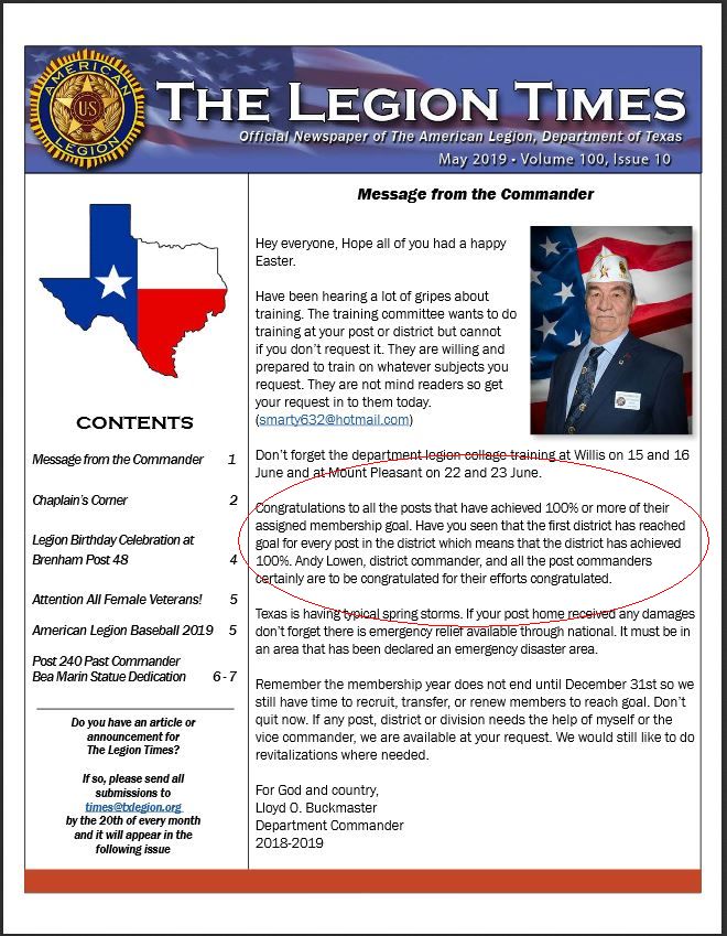 | 2019-05 | Legion Times (May): Message From the Commander