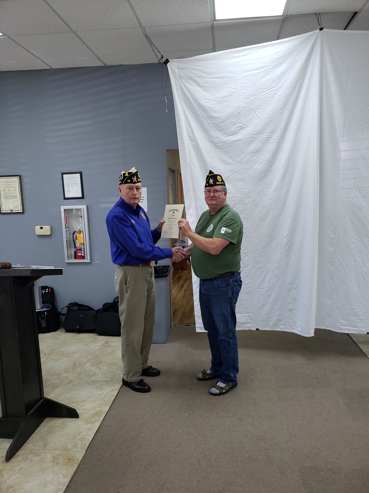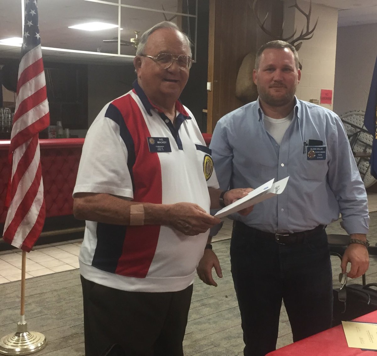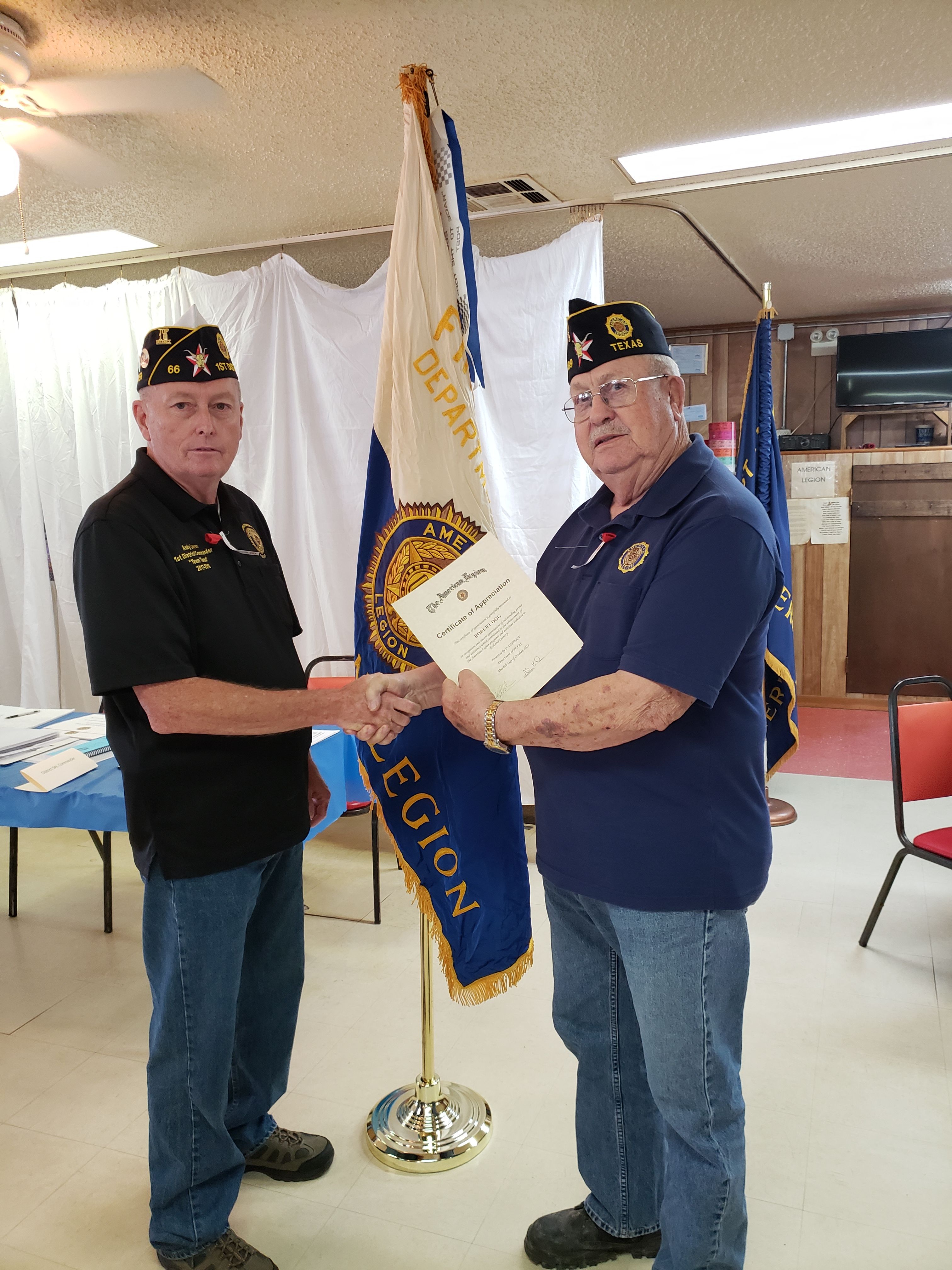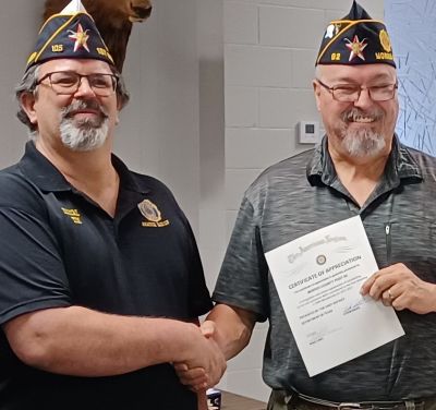| John Williams, Hooks Post Adjutant, received awards from District Commander, Glenn Willis. | .