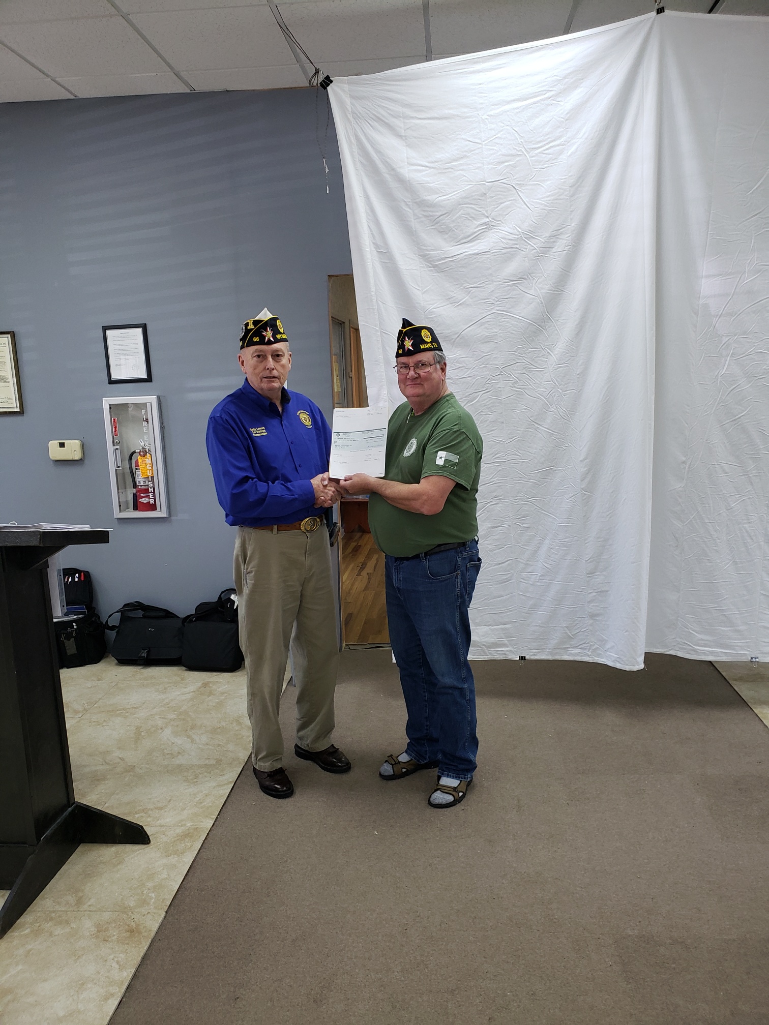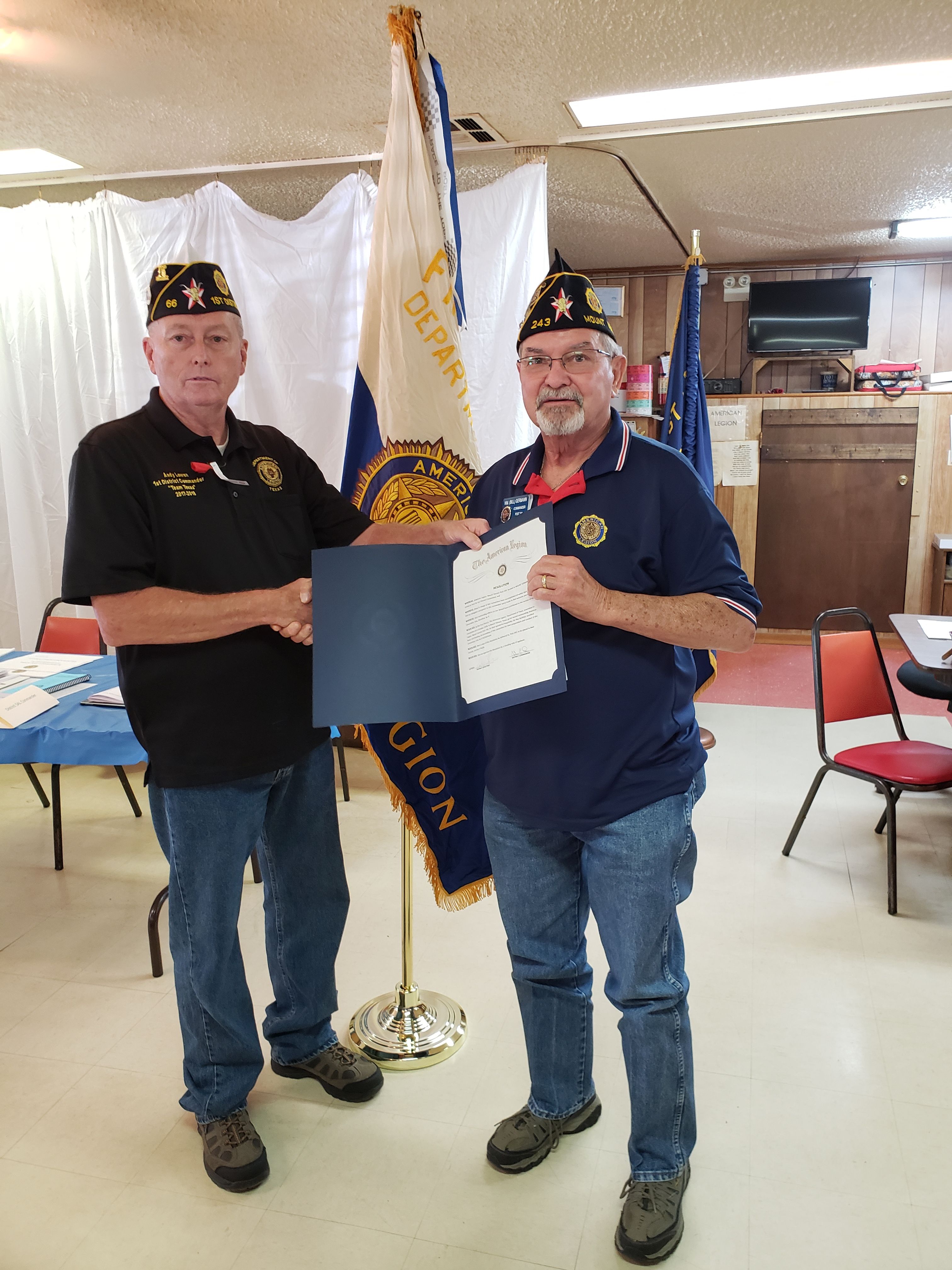 | Commander Willis presents Post 488 Commander Dan Odom a for the Host Post and a for hosting the District Convention. |