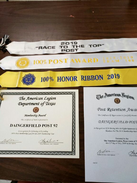 | Post 161 retains the District top membership award. |