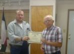 | Commander Willis presents a for obtaining over 100% to Post 92 Vice Commander John Moore. |