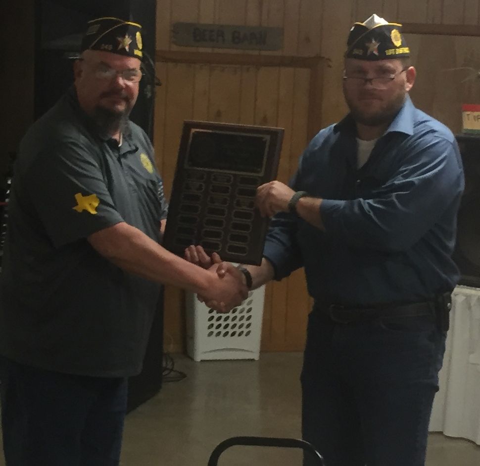 | Commander Willis present the District Trophy in attendance to Cody Cummings, Maud Post 161. |