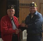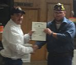 | Commander Willis presents a for obtaining over 100% to Post 66 Commander Andy Lowen. |