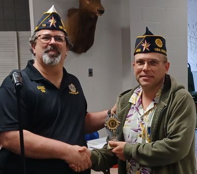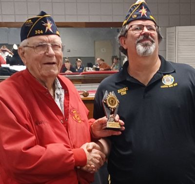 | Bud Mackey, Paris Post Commander, received awards from District Commander, Glenn Willis. |