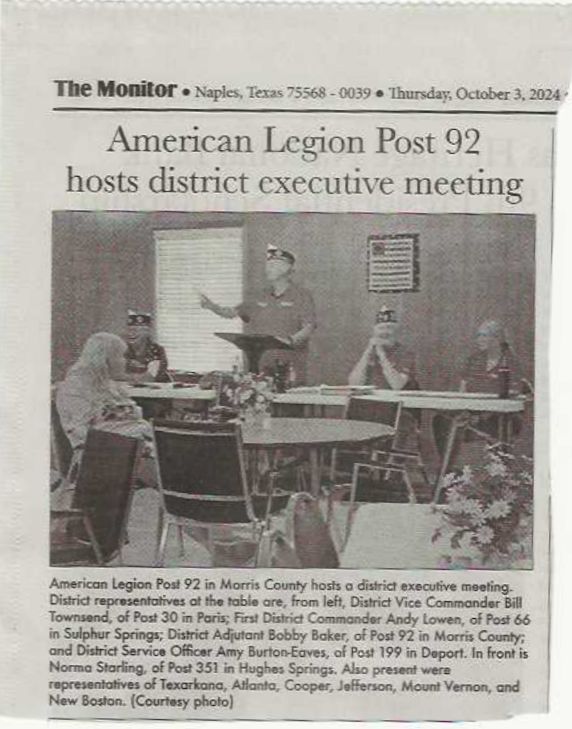 Americal Legion Post 92 hosts district executive meeting |