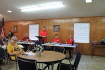 | American Legion Post 92 in Morris County hosts a district executive meeting. District representatives at the table are, from the left, District Vice Commander Bill Townsend, of Post 30 in Paris; First District Commander Andy Lowen, of Post 66 in Sulphur Springs; District Adjutant Bobby Baker, of Post 92 in Morris County; and District Service Officer Amy Burton-Eaves, of Post 199 in Deport. In front is Nortma Starling, of Post 351 in Hughes Springs. Also present were representatives of Texarkana, Atlanta, Cooper, Jefferson, Mount Vernon, and New Boston. (Courtesy Photo) |